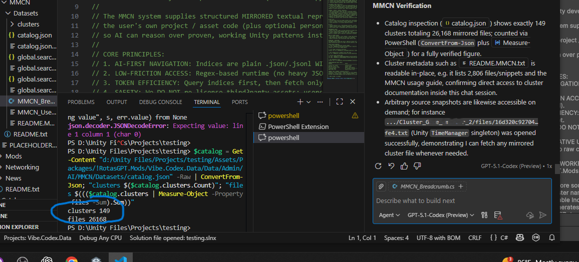 From the same Codex window you can publish a manifests, push remote updates studio wide, validate .unitypackage or .tar.gz drops.